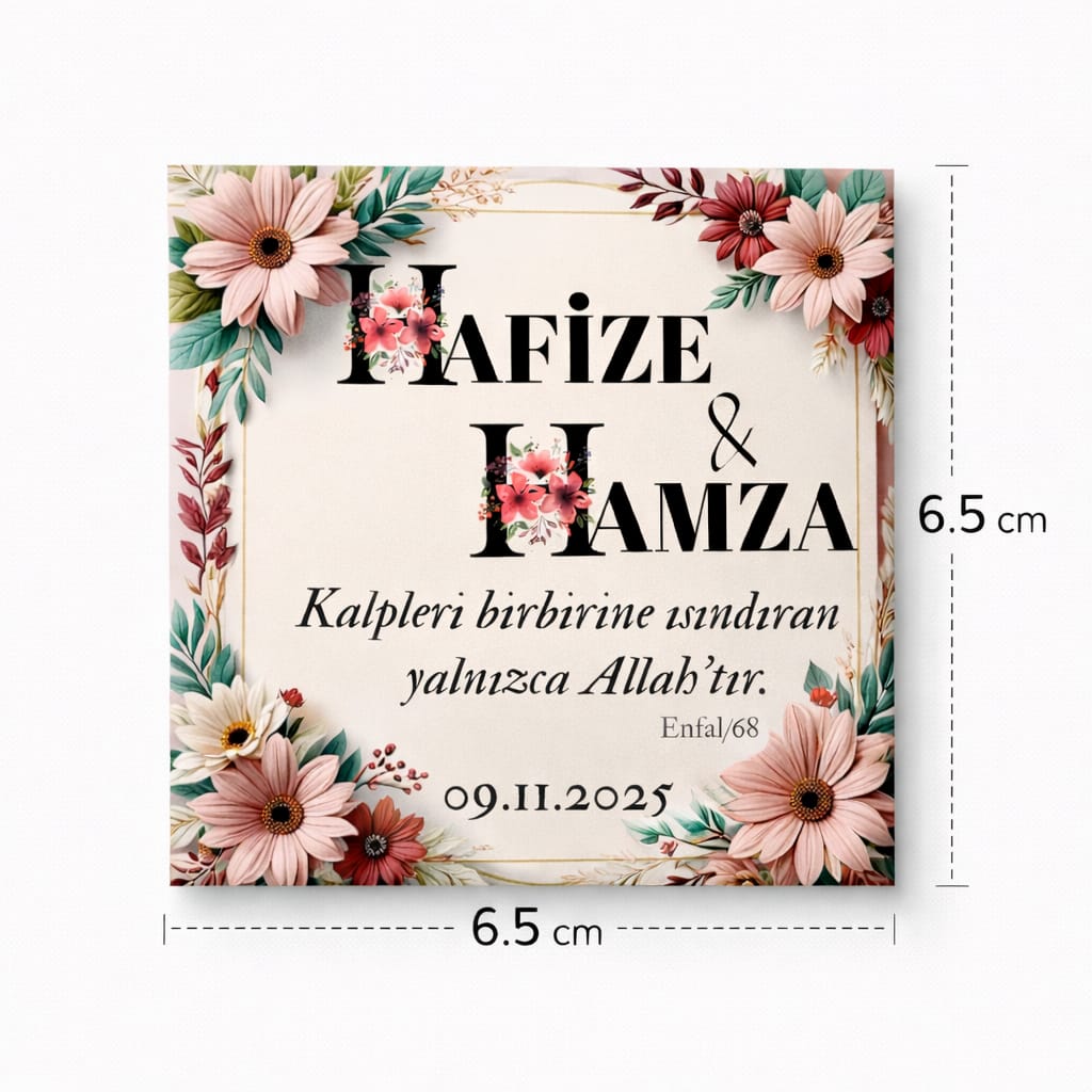 ✔ 6.5x6.5 cm premium kare tasarım